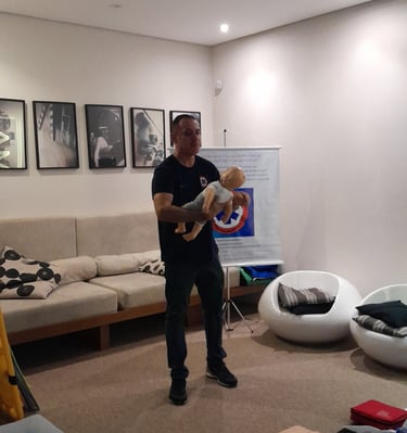 Nosso treinamento é feito com atividades teórico-práticas, que simulam situações reais do dia-a-dia nas quais os participantes aprendem a lidar com as ocorrências mais comuns no cotidiano como quedas, fraturas, sangramentos, queimaduras, convulsões e também aprendem a atender emergências mais graves, como aliviar engasgos, realizar técnicas de ressuscitação cardiopulmonar (RCP) e usar o desfibrilador externo automático (DEA).